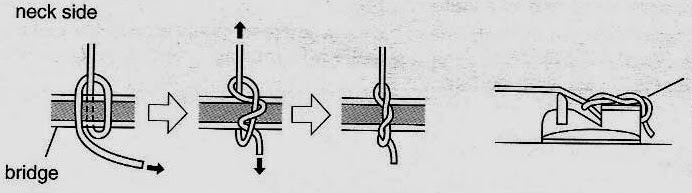 Si ta corde glisse au niveau du chevalet c'est qu'elle est mal "freinée"Tu enrouleras ta corde sur la mécanique sans jamais l'accorder puis elle finira par échapper du chevalet